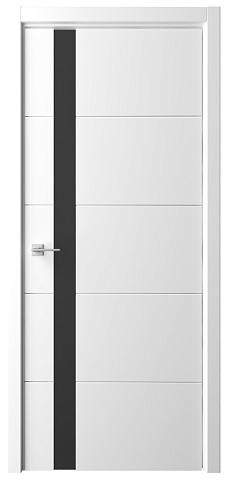 Дверь Геометрия-7 ширина 80 см Белый Эмаль Стекло черное с замком кромка В цвет полотна в Костроме