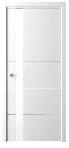 Дверь Геометрия-7 ширина 80 см Белый Эмаль Стекло белое с замком кромка В цвет полотна в Костроме
