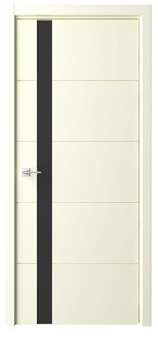 Дверь Геометрия-7 ширина 90 см Латте Эмаль Стекло черное с замком кромка В цвет полотна в Костроме