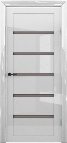 Дверь Вена ширина 90 см Белый глянец Глянец Стекло мателюкс бронза с замком в Костроме